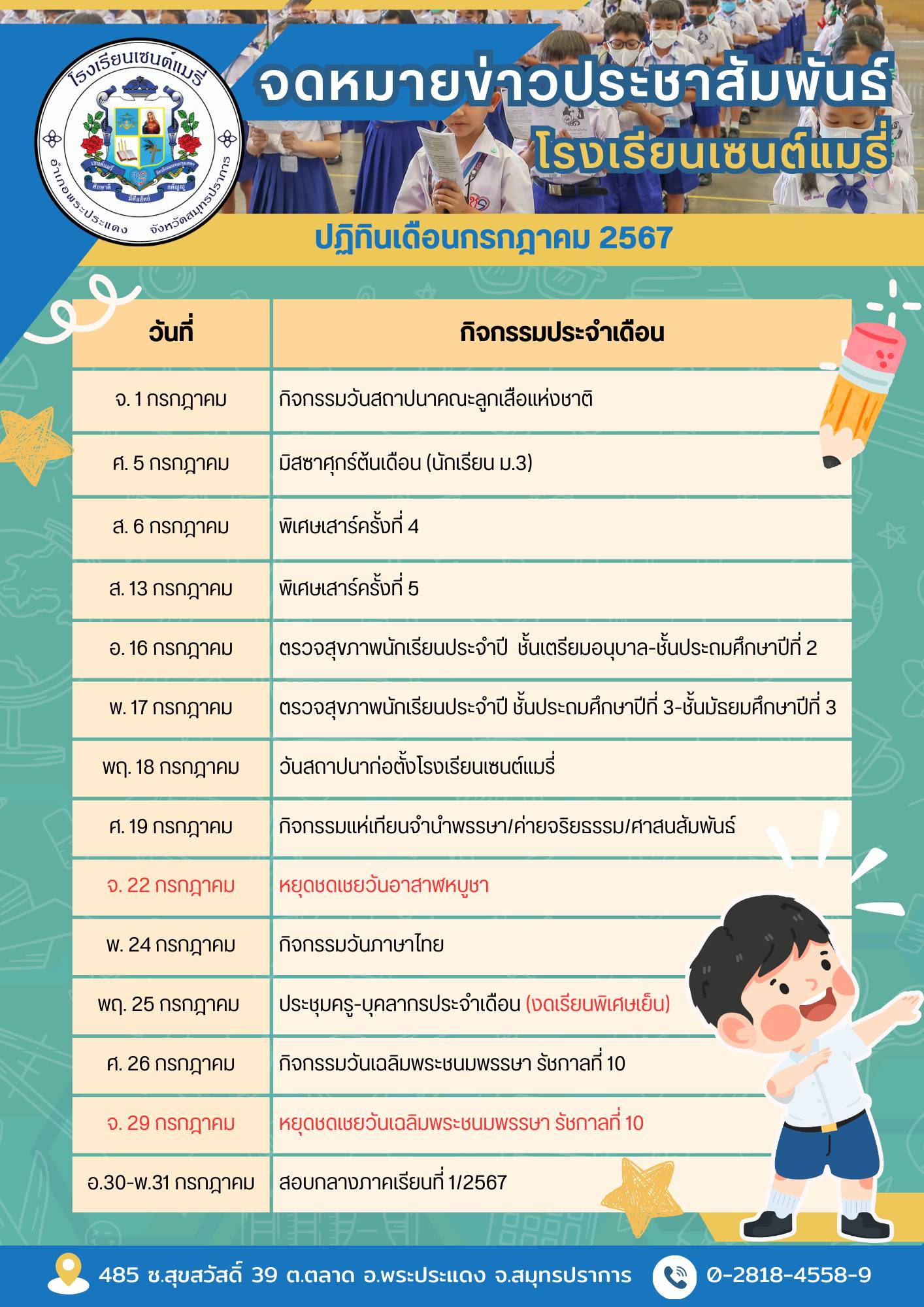 ประชาสัมพันธ์ ปฏิทินกิจกรรมประจำเดือน กรกฏาคม 2567