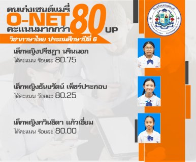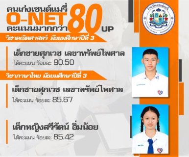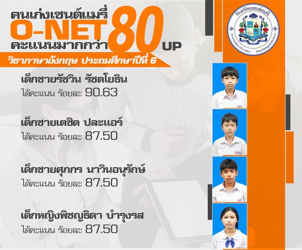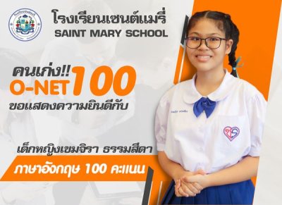 ขอแสดงความยินดีกับ "คนเก่ง เซนต์แมรี่" กับการพิชิต O-NET 80 UP!! ระดับชั้นมัธยมศึกษาปีที่ 3